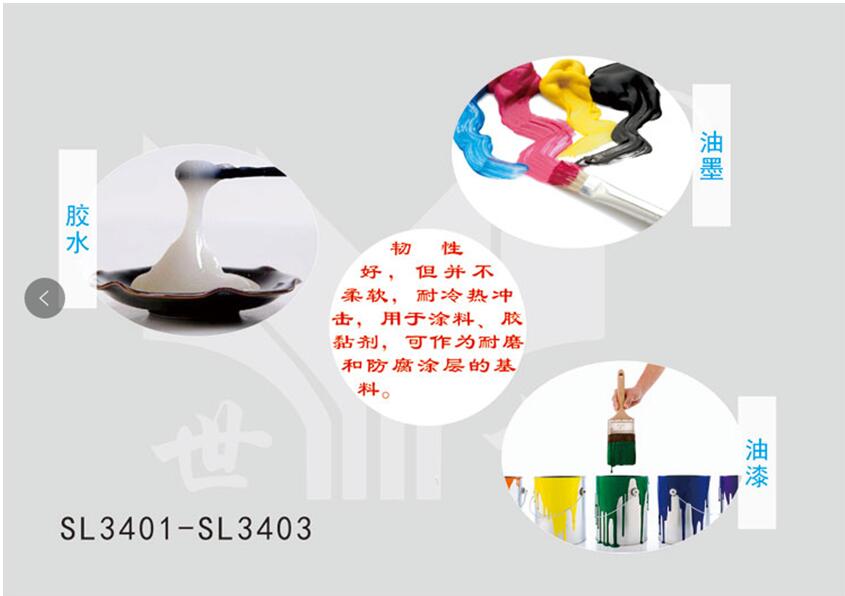 另外, 聚氨酯改性環(huán)氧樹脂SL3401可以單獨(dú)使用,也可作為增韌劑添加到環(huán)氧樹脂配方中使用。另外,因?yàn)檫@款產(chǎn)品為油性材料,和環(huán)氧樹脂有很好的相容性,顏色淺,無橡膠的臭味,能夠滿足客戶對于環(huán)保的要求。在膠粘劑、涂料和復(fù)合材料領(lǐng)域?qū)⒕哂袕V泛的應(yīng)用前景。