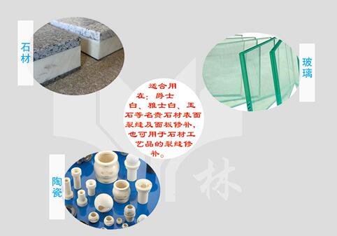 可用于石材與石材、石材與玻璃的復合、石材工業(yè)中用來補強、填補具有多孔及表面的裂紋、小孔洞、砂眼、螞蟻路以及凸凹不平的多種天然石材和混凝土、提高表面質(zhì)量、也可用于玻璃紗網(wǎng)加強易碎石板,提高成品率。