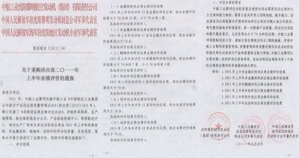 10月17日一早, 中航工業(yè)沈陽黎明航空發(fā)動機(jī)(集團(tuán))有限公司發(fā)來賀電:祝賀世林膠業(yè)在2011年上半年非金屬材料供應(yīng)商綜合評價結(jié)果中各項(xiàng)指標(biāo)均為滿分!