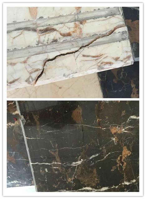 根據(jù)網(wǎng)上提供的號碼18169335841,聯(lián)系到銷售工程師謝工,告知斷裂面大需要先無水清理干凈斷面,再調(diào)和石粉補(bǔ)強(qiáng)固定住后再灌膠到裂縫內(nèi),等固化后再打磨,裂縫小則直接用膠灌注表面等膠慢慢滲入。于是訂購一組按說明操作,哎!還別說,效果還真的好。不僅大理石斷裂處全部修補(bǔ)好了,連之前一些小的裂縫也都填補(bǔ)齊了,打磨后還非常牢固。 SL3218透明裂縫修補(bǔ)膠除了用在大理石裂縫修補(bǔ)外還可以用于其他玻璃、木材、陶瓷等的裂縫及斷裂面修補(bǔ)