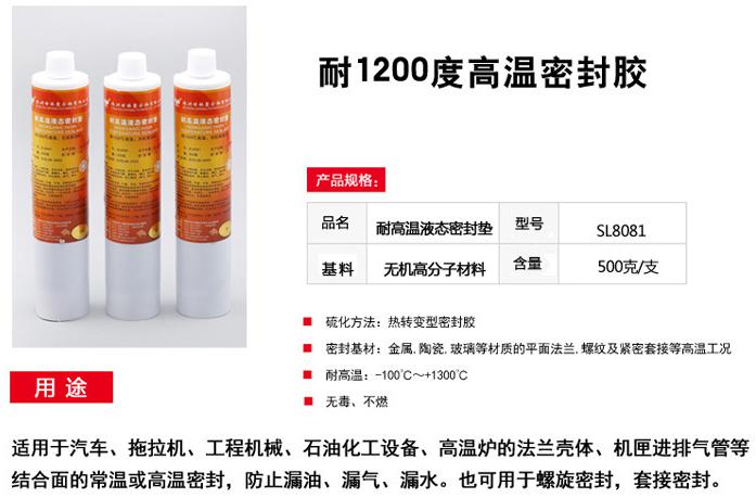 大家都知道高溫爐的法蘭殼體、閥門(mén)、機(jī)匣進(jìn)排氣管、管螺紋接頭等結(jié)合面,以及一些耐高溫的螺紋及銷(xiāo)釘都需要用的耐高溫的密封膠。那市面上這么多高溫膠,高溫密封膠用什么好呢?株洲世林聚合物有限公司有一款SL8081高溫密封墊(密封膠)其工作溫度從-100℃~+1200℃,短時(shí)能耐+1300℃。其性能與英SQ2高溫密封劑相當(dāng)。它具有優(yōu)異的耐超高溫、阻燃、耐老化、耐酸堿等性能;滿(mǎn)足一般膠粘劑無(wú)法解決的高溫設(shè)備的密封、填補(bǔ)、灌封、修補(bǔ)和粘接等難題。