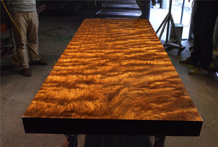實(shí)木大板,是近幾年漸趨流行的一種商業(yè)和辦公家具,它主要由外國進(jìn)口的較為名貴的百年老木做成。這些木頭口徑較大,一般少在2000px以上上,從中切出一片10-375px厚的大板,就是實(shí)木大板?捎糜谧鲛k公桌、大班臺(tái)、主管桌、會(huì)議桌以及辦公電腦桌等。主要的材質(zhì)有巴西花梨、非洲楠木、非洲雞翅木、緬甸金絲柚木、非洲紅花梨、非洲黃花梨、非洲奧坎花梨等。實(shí)木大板在成型之前的木材是有許多無規(guī)則的裂縫、蟲洞的,但我們買到的實(shí)木大板看不到這些裂縫,這是怎么弄的呢?